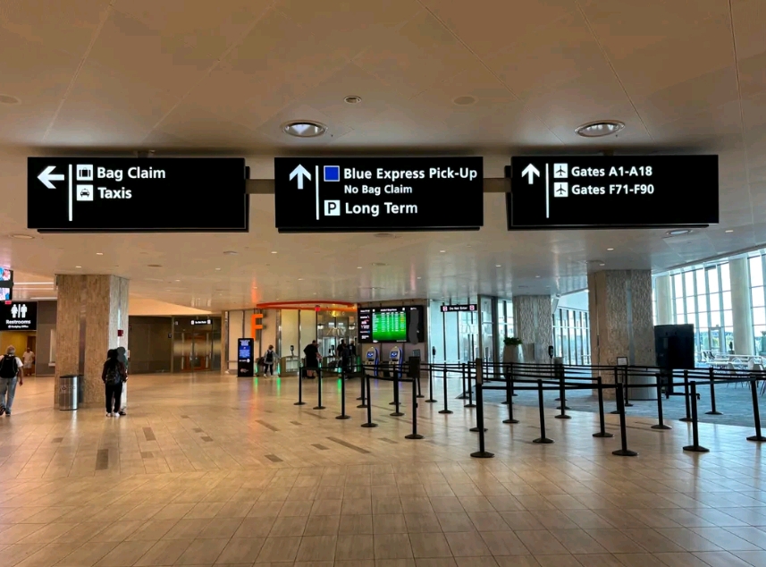Collect your luggage from baggage claim before proceeding to the pickup area. Check signs for the specific carousel assigned to your flight, which are separated by Red and Blue.