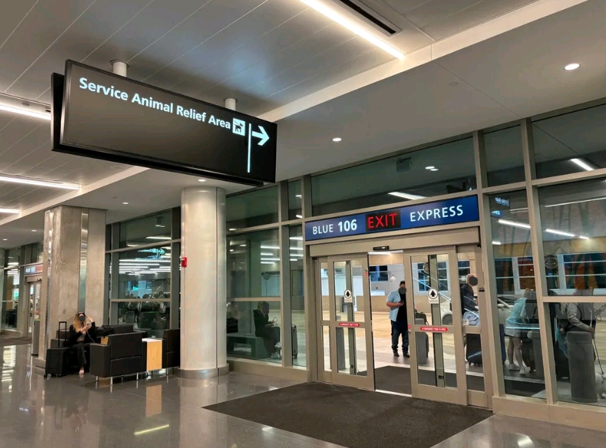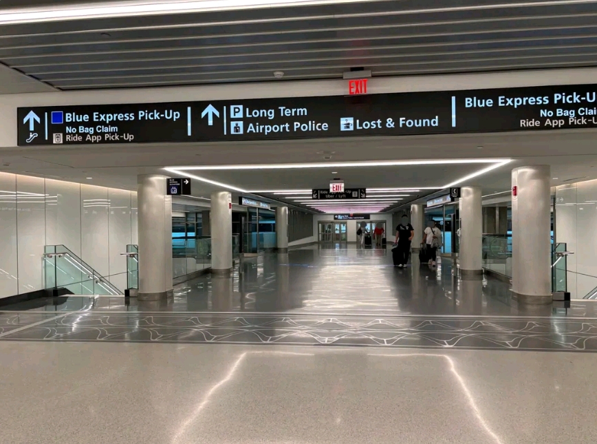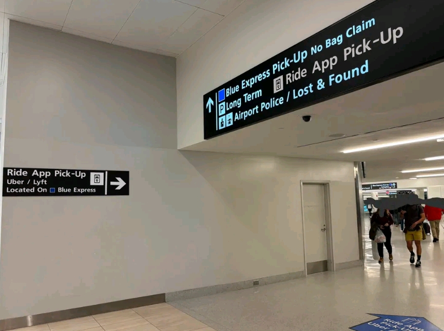 Keep following the signage for Blue Express Pickup near the blue elevator bank