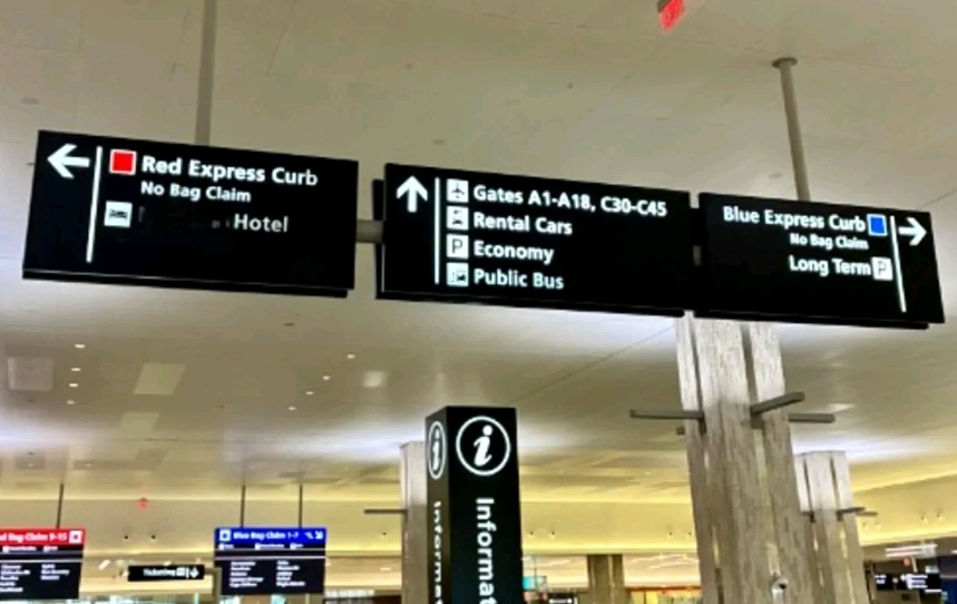 Collect your luggage from baggage claim before proceeding to the pickup area. Check signs for the specific carousel assigned to your flight, which are separated by Red and Blue.