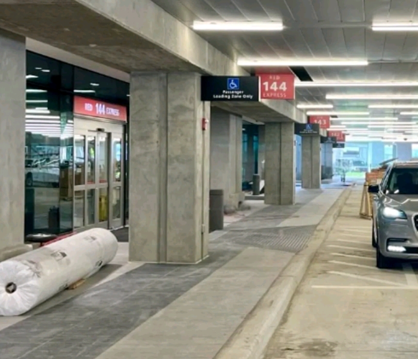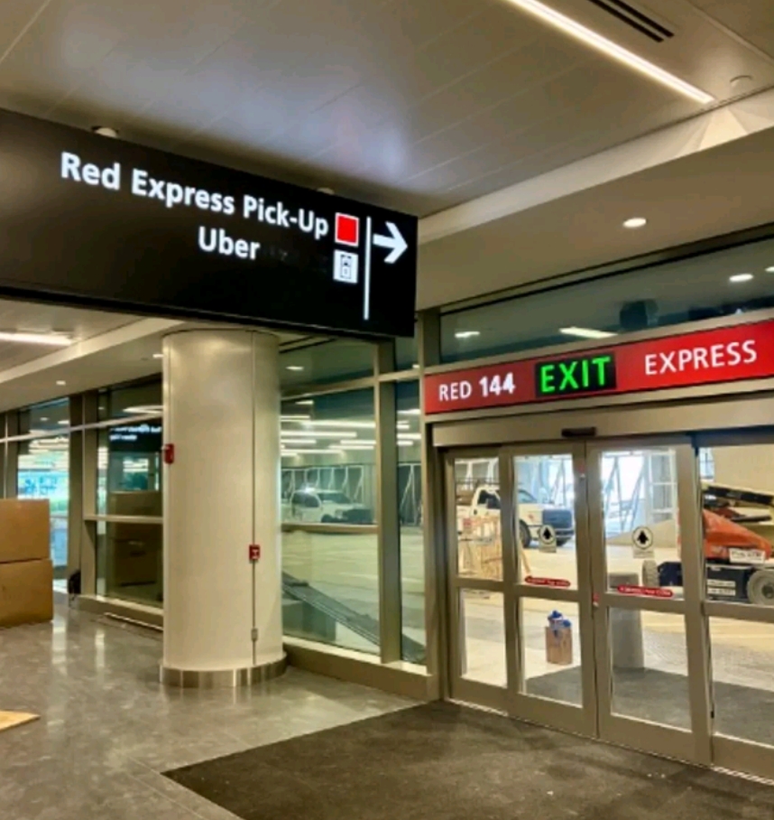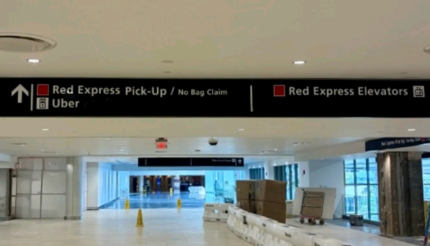 Continue following the signage for Red Express Pickup near the Red elevator bank